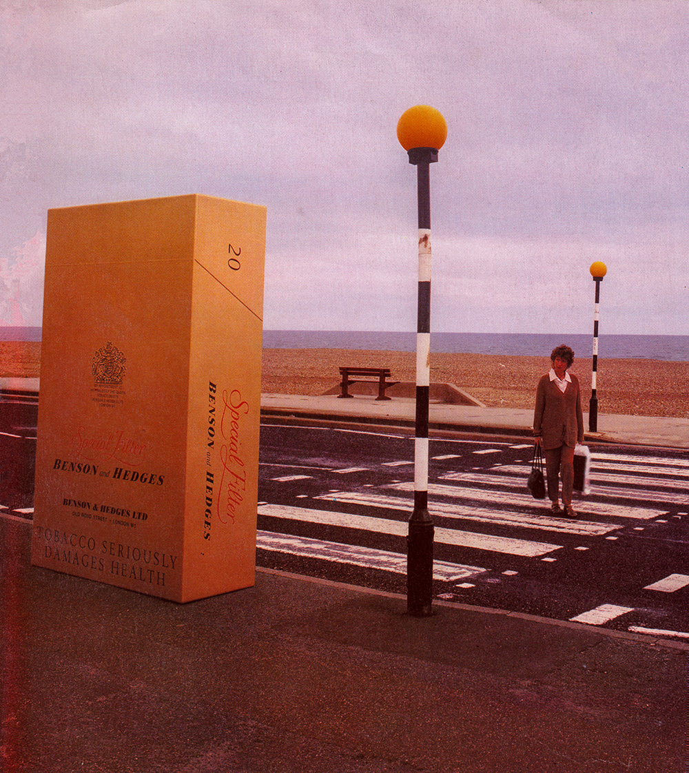Benson & Hedges giant cigarette packets for installations. Original Polaroid by Robert Courtney.They had to be accurate and withstand being outdoors, including one in the net of a North Sea fishing trawler. Photograph by Robert Courtney.Model Solutions Benson & Hedges traffic crossing shoot (no Photoshop)