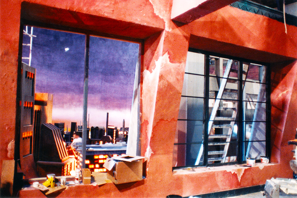 The cityscape must be believable enough to withstand the loss of dirty windows during action sequences. Photograph by Robert Courtney.
