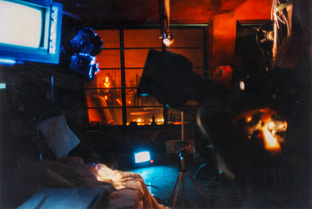 The largest cityscape building was directly opposite the main apartment, which meant we had to build fake rooms behind the intentionally grubby windows. It was based on a dystopian version of my old council flat. Photograph by Robert Courtney.