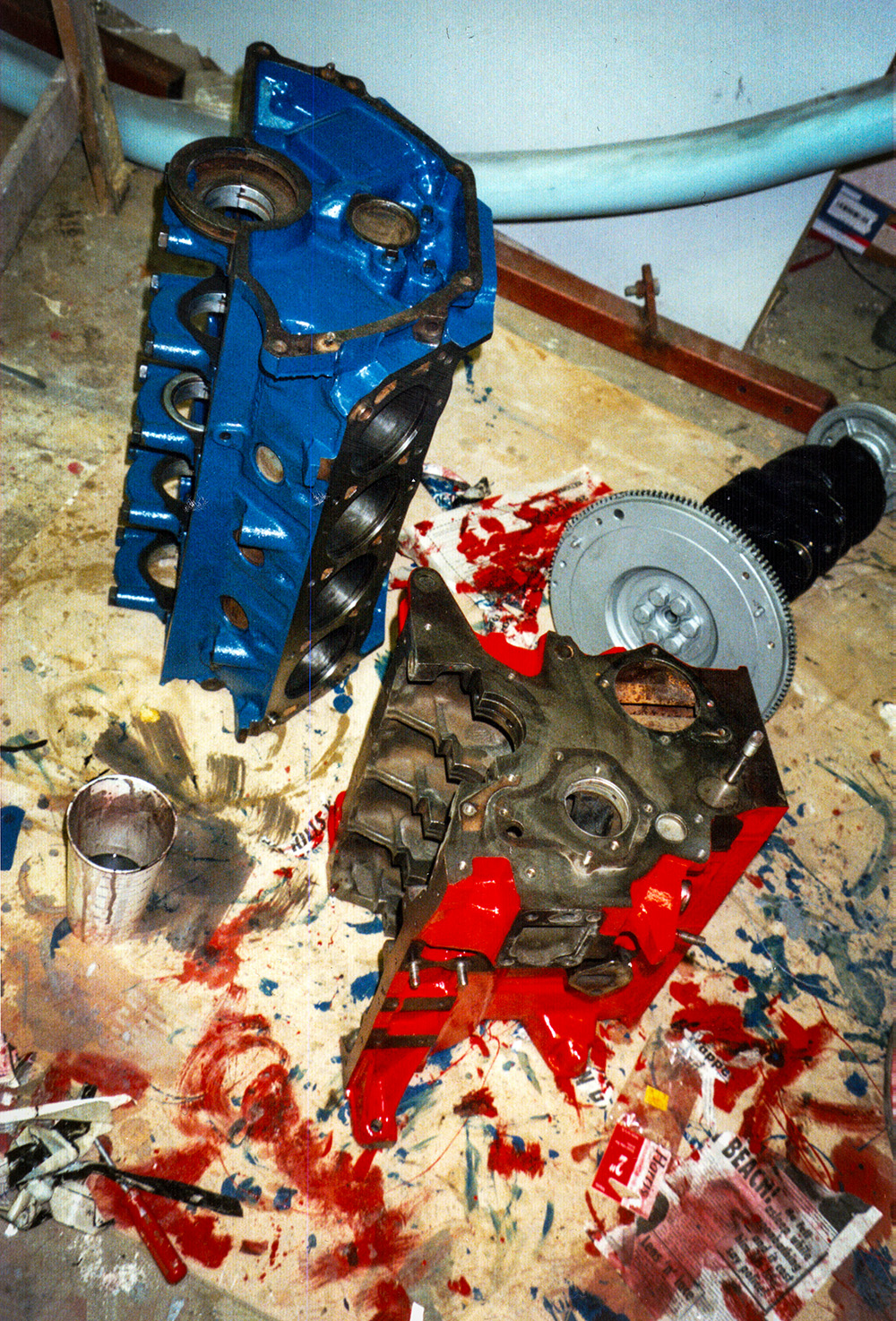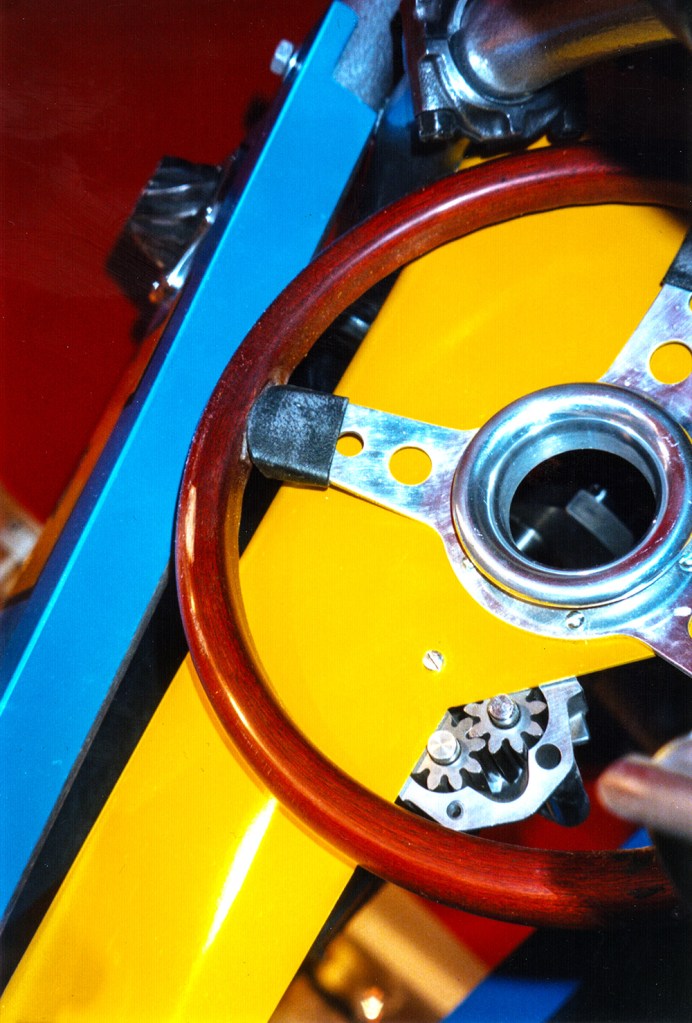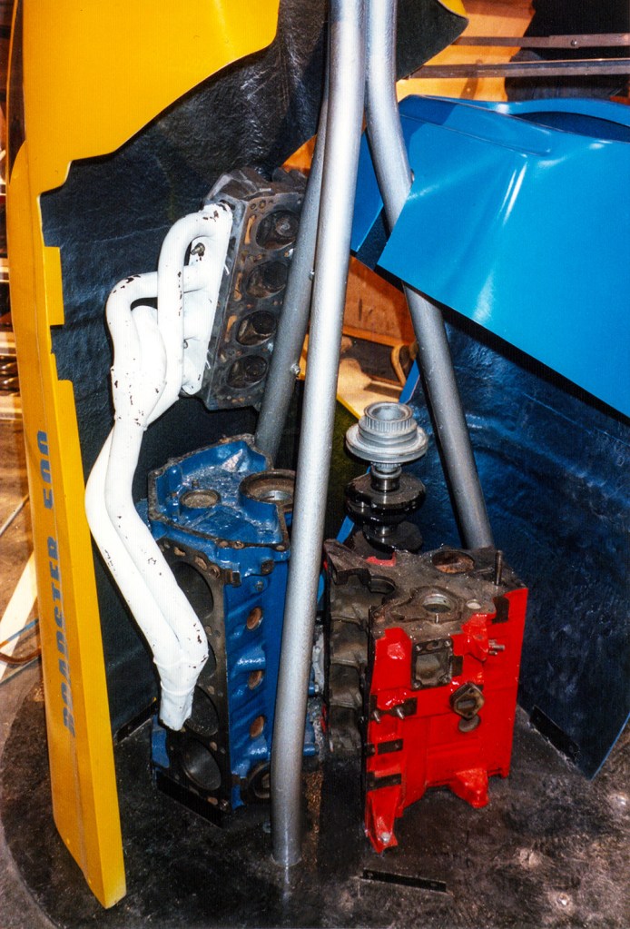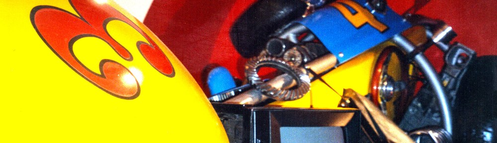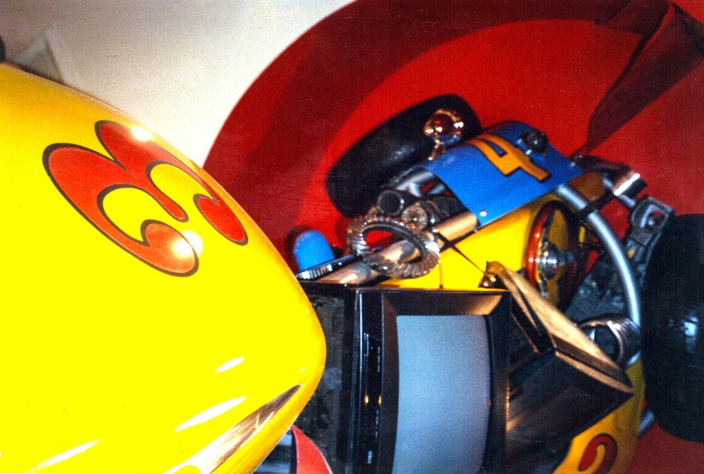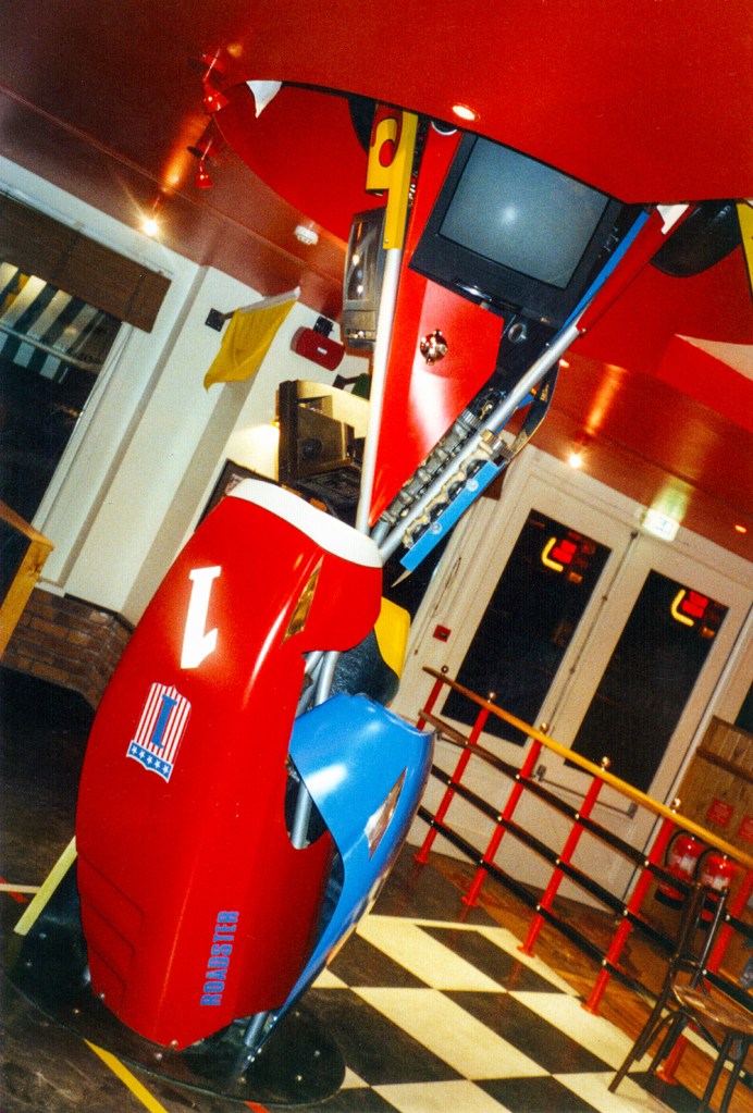 ‘Indy 500’ Sculpture made for a motor racing themed restaurant/bar in Epping. Photograph by Robert Courtney.I found a place that made body parts for Caterhams and F3 cars; the rest of the pieces came from breaker yards and second-hand F1 stores (though they were expensive). Photograph by Robert Courtney.Photograph by Robert Courtney.I like the vibrant colours of Motor Racing! Photograph by Robert Courtney.Photograph by Robert Courtney.Hammerite is the only paint for the job! Photograph by Robert Courtney.Photograph by Robert Courtney.Heavy metal at the base. Photograph by Robert Courtney.Original maquette for the sculpture by Robert Courtney, Polaroid by Robert Courtney.